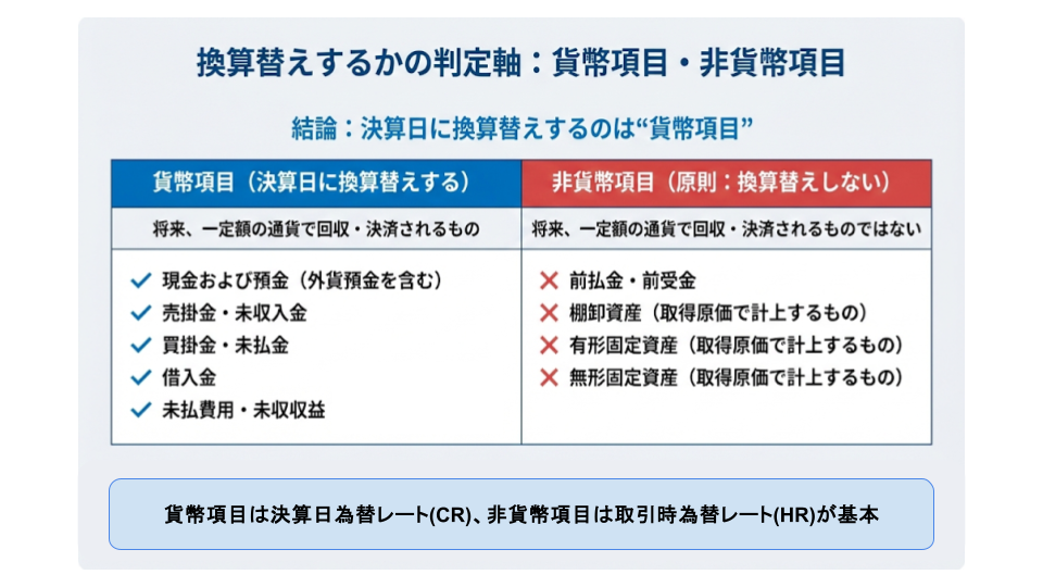 換算する/しないの判定軸(貨幣項目・非貨幣項目)