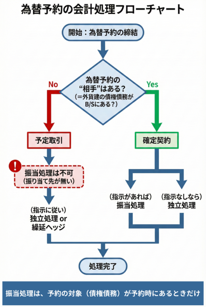 予定取引の段階では、書き換えるべき債権債務がまだB/Sに存在しないため、物理的に振当処理ができません。