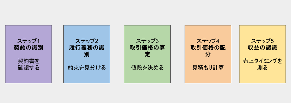 難しく見えるかもしれませんが、要するに「契約書をよく見て、約束を分解し、それぞれの値段を決め、最後に約束を果たしたタイミングを測る」という一連の作業です。